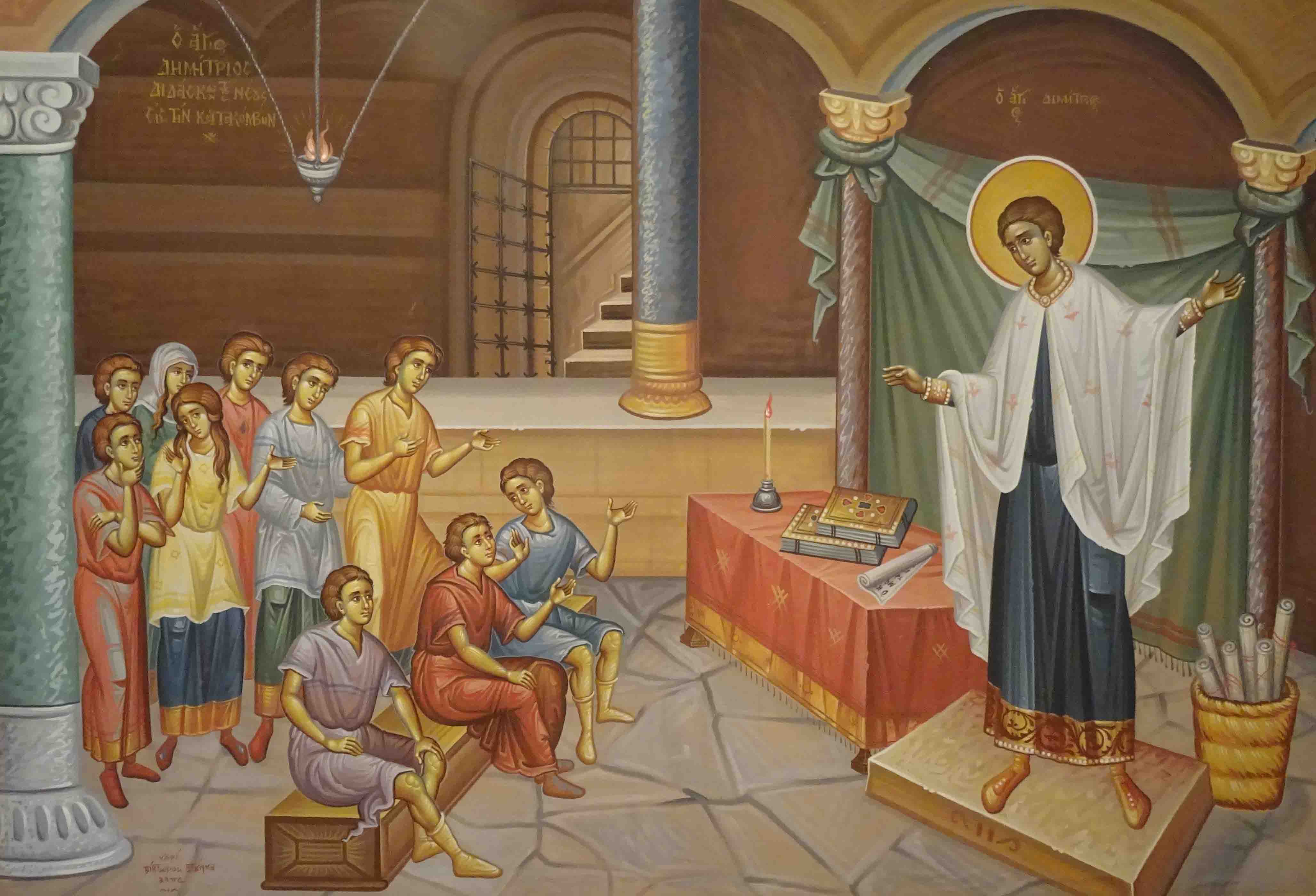 Ὁ ἅγιος Δημήτριος δίδασκε μικροὺς καὶ μεγάλους, καὶ ἀποτελεῖ γιὰ μᾶς παράδειγμα. Ὅπως δηλαδὴ ἐκεῖνος προσπαθοῦσε νὰ φέρῃ ὅλους κοντὰ στὸ Θεό, ἔτσι κ᾿ ἐμεῖς πρέπει νὰ ἀγαποῦμε τὴ διδασκαλία καὶ νὰ προσπαθοῦμε νὰ τὴν διαδίδουμε. Μὴν τὰ περιμένουμε ὅλα ἀπὸ τοὺς διδασκάλους καὶ τοὺς κήρυκες. Ὣς ἕνα βαθμὸ καὶ μὲ κάποιες προϋποθέσεις ὅλοι πρέπει νὰ κατηχοῦμε καὶ νὰ διδάσκουμε.