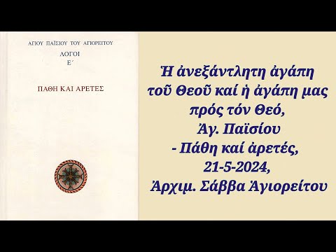 Ἡ ἀνεξάντλητη ἀγάπη τοῦ Θεοῦ καί ἡ ἀγάπη μας πρός τόν Θεό, Ἀγ. Παϊσίου- Πάθη καί ἀρετές, 21-5-2024, Ἀρχιμ. Σάββα Ἁγιορείτου