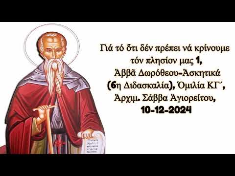 Γιά τό ὅτι δέν πρέπει νά κρίνουμε τόν πλησίον μας 1, Ἁββᾶ Δωρόθεου-Ἀσκητικά (6η Διδασκαλία), Ὁμιλία ΚΓ΄, Ἀρχιμ. Σάββα Ἁγιορείτου, 10-12-2024 Ἱ.Μ. Ἁγίας Τριάδος Ἐδέσσης http://hristospanagia3.blogspot.com