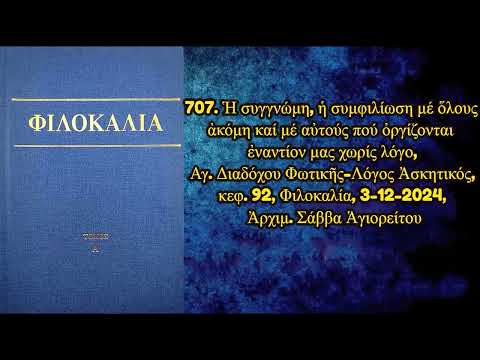 Ἡ συγγνώμη, ἡ συμφιλίωση μέ ὅλους ἀκόμη καί μέ αὐτούς πού ὀργίζονται ἐναντίον μας χωρίς λόγο, Αγ. Διαδόχου Φωτικῆς-Λόγος Ἀσκητικός, κεφ. 92, Φιλοκαλία, 3-12-2024, Ἀρχιμ. Σάββα Ἁγιορείτου Ἱ.Μ. Ἁγίας Τριάδος Ἐδέσσης