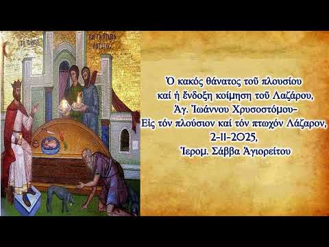 Ὁ κακός θάνατος τοῦ πλουσίου καί ἡ ἔνδοξη κοίμηση τοῦ Λαζάρου, Ἁγ. Ἰωάννου Χρυσοστόμου- Εἰς τόν πλούσιον καί τόν πτωχόν Λάζαρον, 2-11-2025, Ἱερομ. Σάββα Ἁγιορείτου Ἱ.Μ. Ἁγίας Τριάδος Ἐδέσσης http://hristospanagia3.blogspot.com